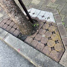 毎年7月の祭礼時には多くの人で溢れかえるフジサンロード。ここの街路樹の根本にはレンガを使って冨士さんがデザインされています。意外なことに、地元に住む方…