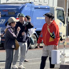 12月16日のBSテレ朝の「ウォーキング日村」で十条が紹介されます。写真はバナナマンの日村勇紀氏が十条冨士講近くでインタビューしている様子です。