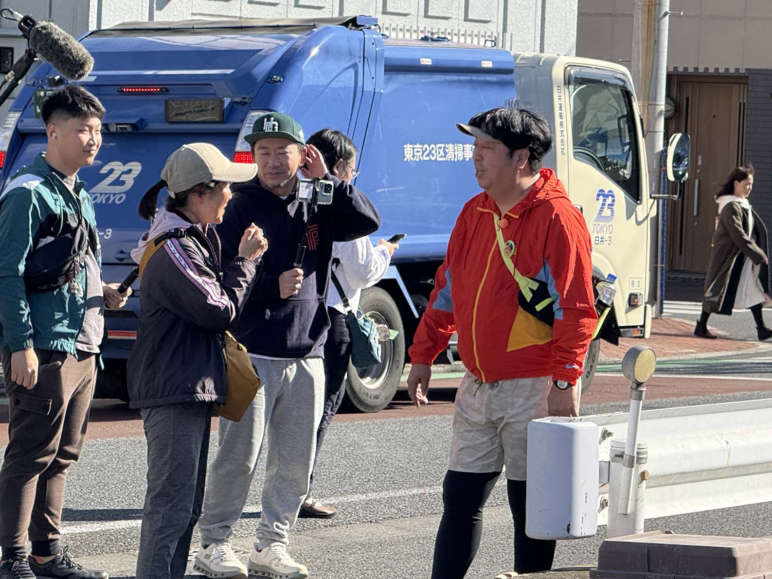 12月16日のBSテレ朝の「ウォーキング日村」で十条が紹介されます。写真はバナナマンの日村勇紀氏が十条冨士講近くでインタビューしている様子です。